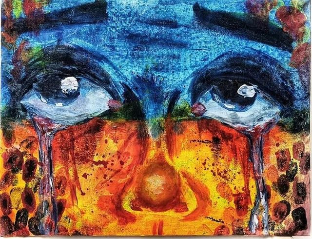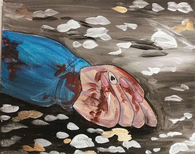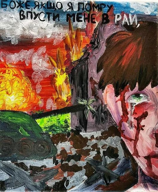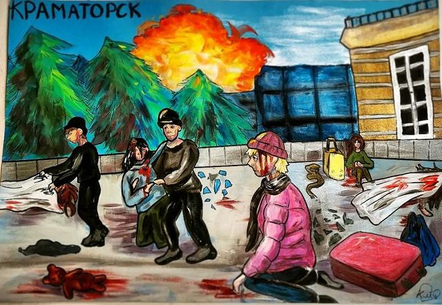 Nicht in der Ausstellung zu sehen sind die Malereien auf Leinwand, die auf sehr eindrückliche und erschütternde Weise Krieg, Gewalt und Zerstörung in Milenas Heimat thematisieren und mit denen sie ihre Gefühle verarbeitet: