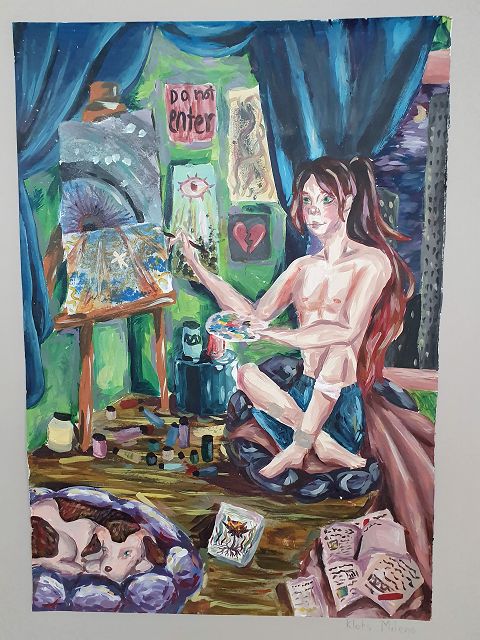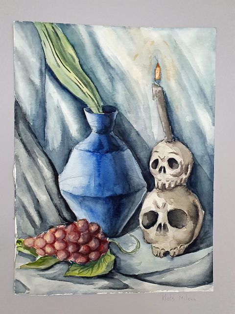Milena besuchte in der Ukraine eine Kunstschule, einige der ausgestellten Werke, die auf der Flucht mitgenommen wurden, sind dort entstanden, andere in Wermelskirchen. Die Bilder faszinieren durch die Verbindung von handwerklichem Können, großer Ausdruckskraft und einem individuellen Stil, der besonders in den Malereien zum Tragen kommt.