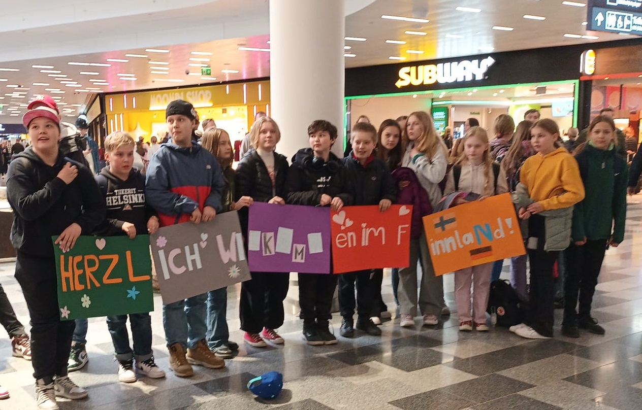 Nach einer aufregenden Flugreise wurde die Wermelskirchener Delegation sehr herzlich am Flughafen Helsinki-Vantaa von den finnischen Schülerinnen und Schülern sowie deren Eltern begrüßt, wobei die Ankunft mehr ein freudiges Wiedersehen war.