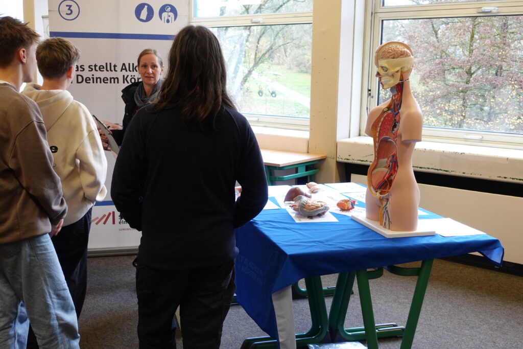 Am 17. und 18. November war das Alk‑Mobil wieder zu Besuch. Schülerinnen und Schüler der Jahrgangsstufe 8 erhielten anschaulich und interaktiv Informationen darüber, wie Alkohol auf den Körper wirkt und welche Folgen er für Wahrnehmung, Emotionen und Verhalten haben kann. Ein besonderer Schwerpunkt lag auf den Auswirkungen in Alltagssituationen – etwa auf Reaktion, Beweglichkeit und Aufmerksamkeit.