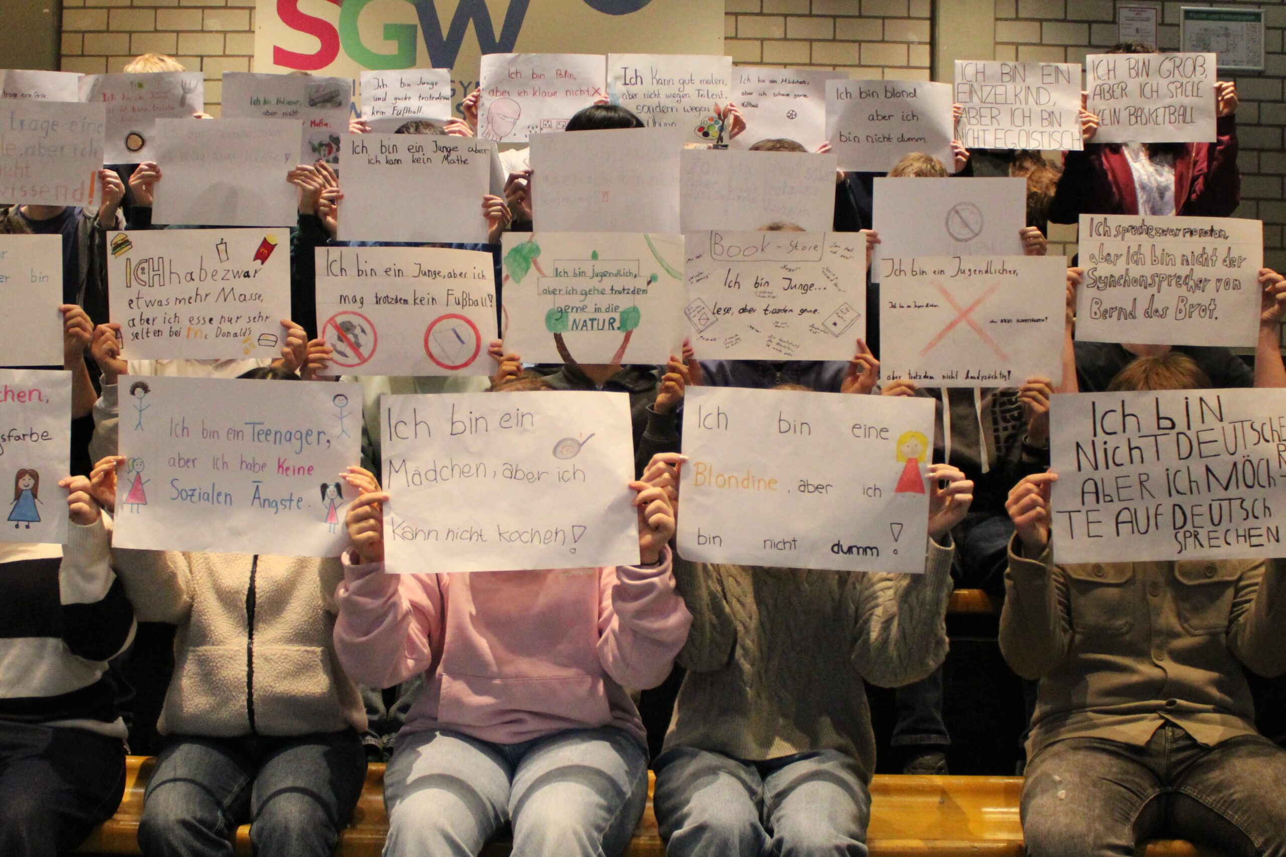 Die PP-Kurse des Jahrgangs 10 von Frau Klaus und Frau Wachnowezki haben sich intensiv mit dem Thema Vorurteile beschäftigt. Im Mittelpunkt stand dabei die Auseinandersetzung mit Vorurteilen, die ihnen selbst begegnet sind – aber auch mit solchen, die sie möglicherweise selbst haben.